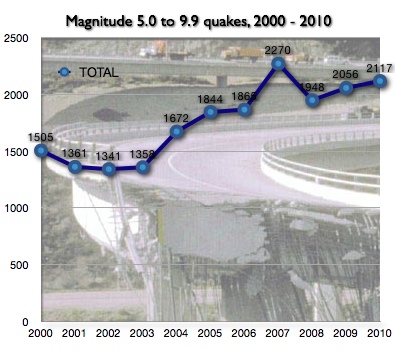 Το 2011, πλησιάζουμε να έχουμε περισσότερους από 2.600 σεισμούς μεγέθους 5.0 ή μεγαλύτερους.