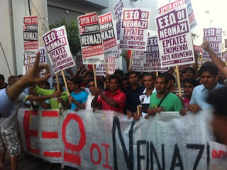 Αυτό βέβαια που χαρακτηρίζεται ως ''συμπλοκή'' στην ουσία είναι ρατσιστική επίθεση εναντίον Έλληνα πολίτη ο οποίος -όπως το ίδιο το newsit μαρτυρά, ήταν απλά περαστικός...!! Και ο νεαρός είναι μόνο ένα... δείγμα. Ακολουθούν φωτογραφίες με τους ''αντιρατσιστές'' που διαμαρτύρονταν κατά ενός νόμιμου κόμματος το οποίο έχει εκλεγεί απο σχεδόν μισό εκατομμύριο Έλληνες και οι διαμαρτυρόμενοι απαιτούν να... εξαφανίσουν, ακυρώνοντας έτσι τη βούληση των νόμιμων πολιτών αυτής της χώρας...